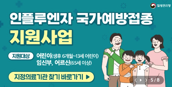 접종 대상인 분들은 사는 곳 근처 지정 병원이나 보건소를 조회하신 후 방문하시면 더 편하게 무료 독감예방접종을 받을 수 있습니다.