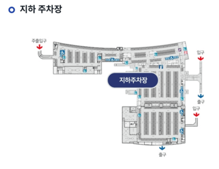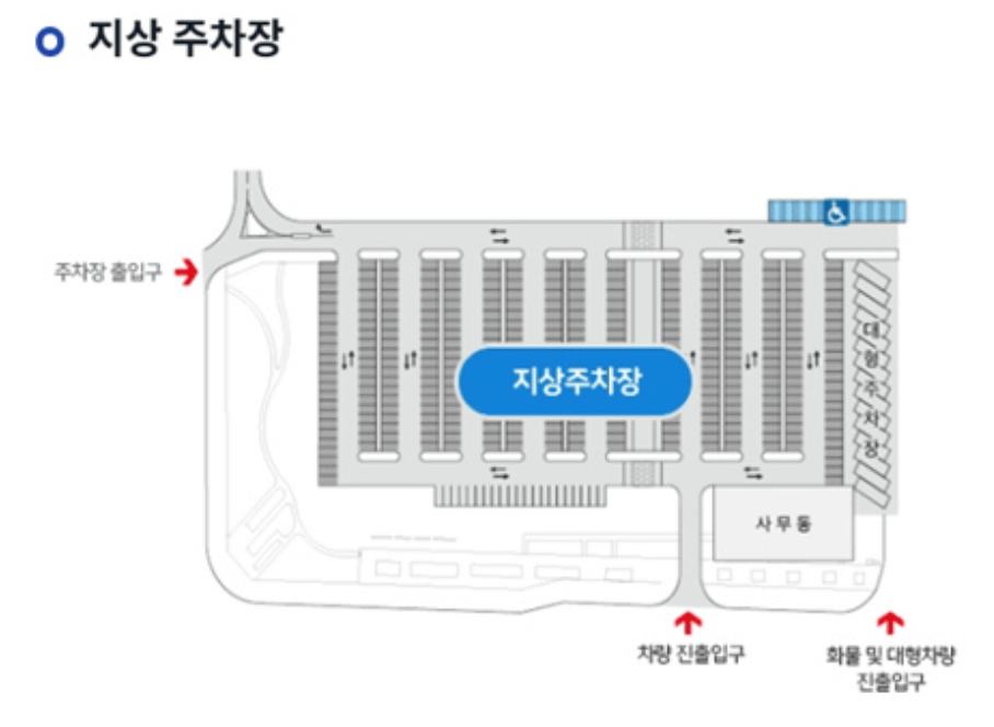 주차장은 지상 주차장과 지하 주차장으로 이루어져 있습니다. 주차 요금은 동일하기 때문에 원하는 곳에 주차하시면 됩니다.